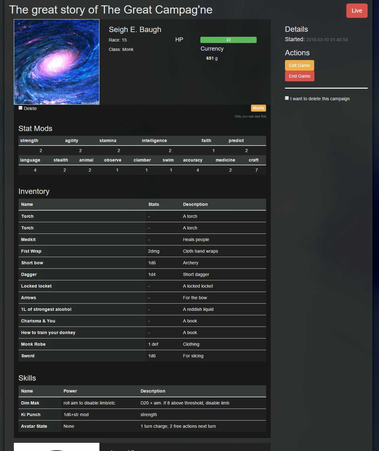 Synk is a web project built to solve the problem of running a D&D campaign and having no way to set the mood with music. Synk works by relaying the audio that the the DM mixes to the players in realtime. Kickstarted the D20Kit project after successful integration with a few D&D Groups.